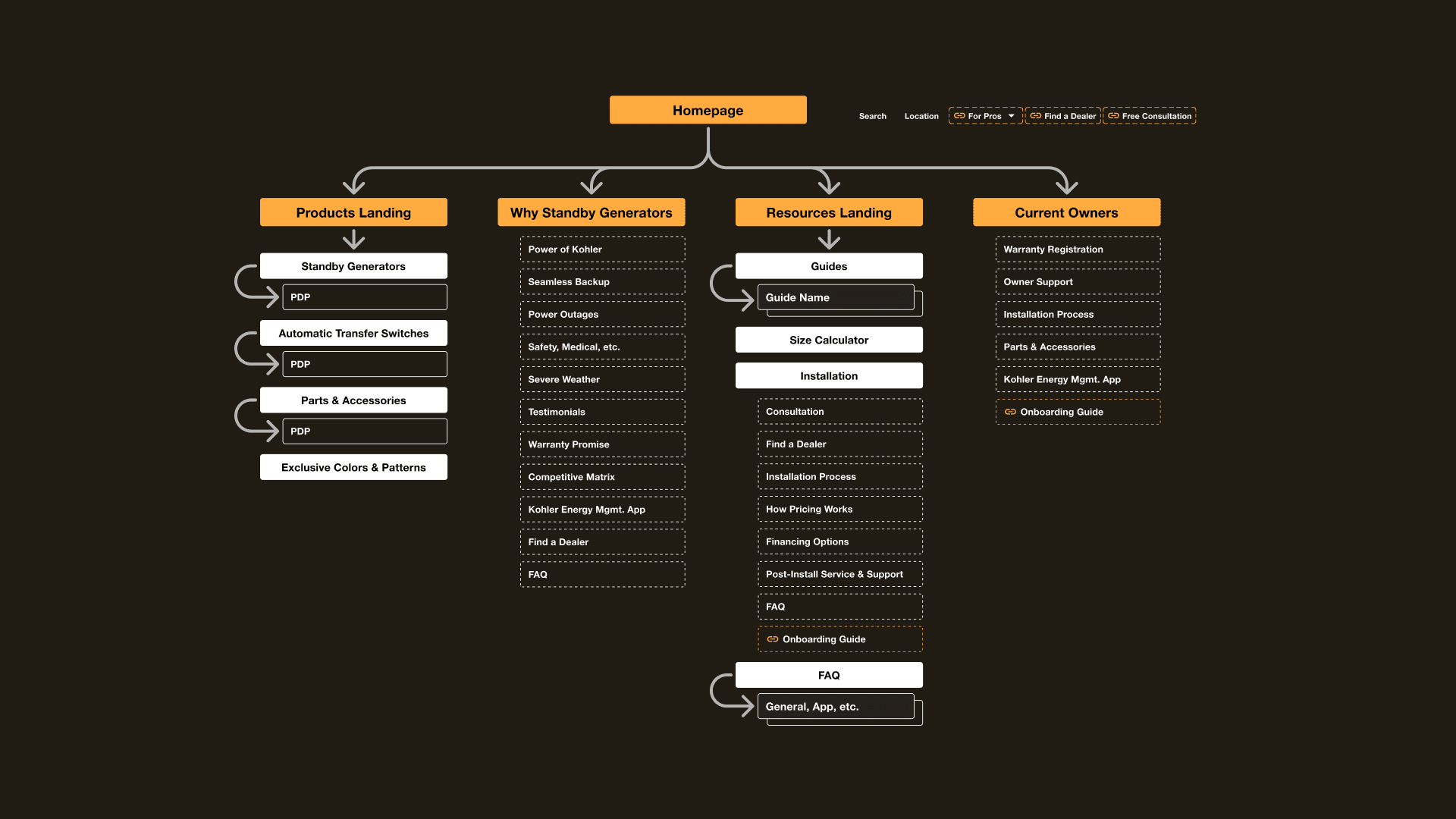 Facing a dominant competitor, KOHLER needed to rapidly elevate brand awareness and establish unmatched credibility in the backup home energy market. However, their existing digital landscape was scattered across multiple microsites, which diluted their domain authority and disrupted the user journey. The mission was clear: consolidate these disparate sites into a single, modernized platform that could seamlessly guide potential buyers down the sales funnel, connect them with local dealers, and serve as a powerful engine for lead generation.